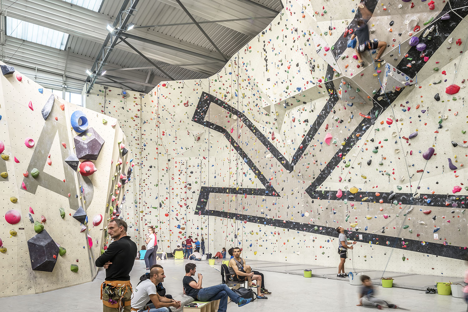 – Intégration de structures artificielles d’escalade (blocs + parois) dans la salle principale 45x25m